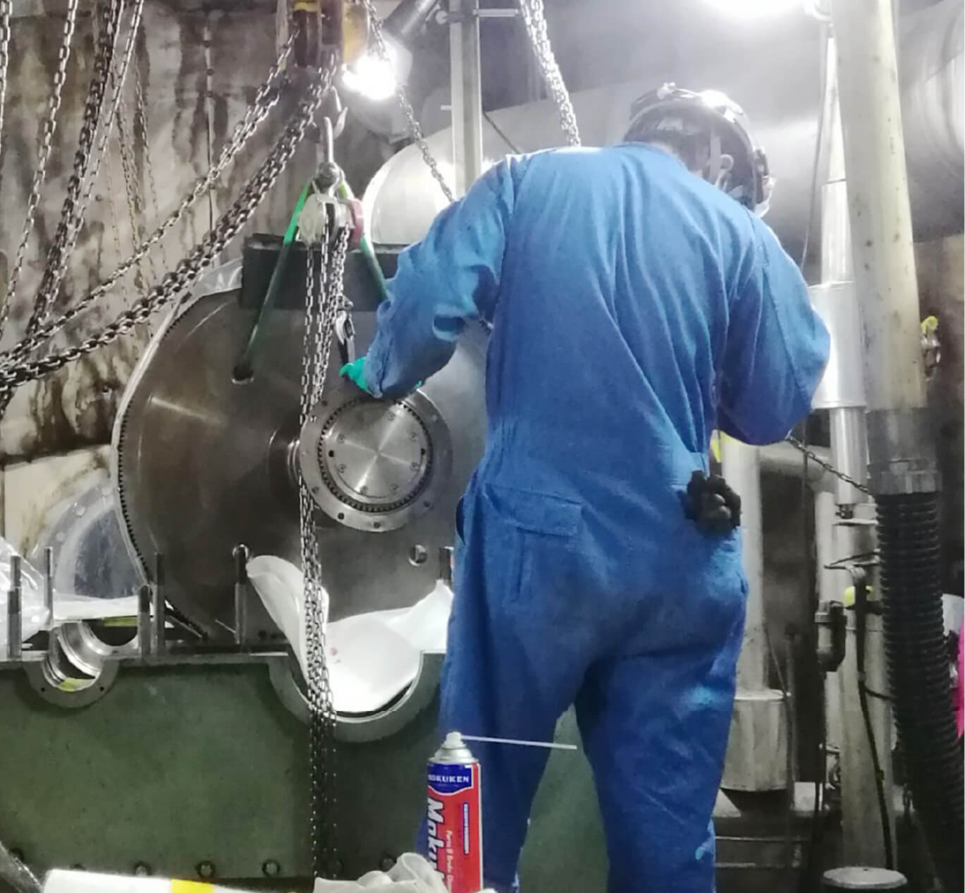 プラント内の重量物据付の仕事では、ただ機械を現場へ搬入して据付を行うだけでなく、正常に稼動する状態にしなければなりません。難しい面もありますが、工事が完了して無事に動き出した時には大きな達成感を得られますよ!